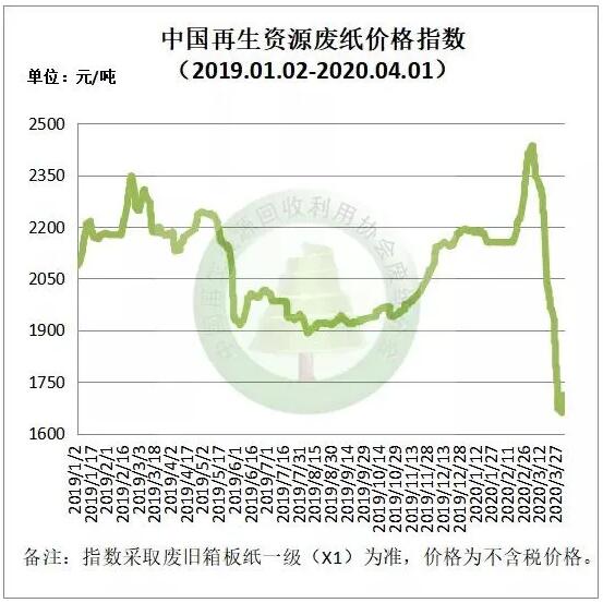 3月受造紙行業價格調整影響,回收紙價格20天內從2450元/噸跌至1650元/噸,跌幅超過32%。