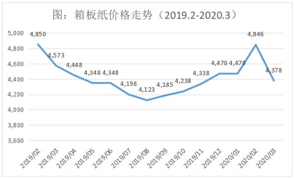 一季度國內包裝紙平均價格約為4612元/噸,同比下降3.8%,3月跌幅較大,較2月下跌9.8%。