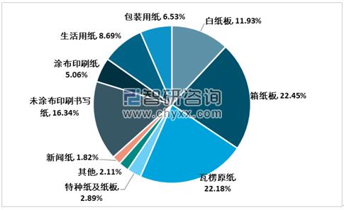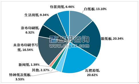 2019年國內(nèi)紙及紙張細分產(chǎn)品生產(chǎn)有3個品種產(chǎn)量有所下降,整體保持良好的增長趨勢,其中瓦楞原紙、箱紙板、未涂布印刷書寫紙以及白板紙占據(jù)主要生產(chǎn)地位,其份額分別為20.62%、20.34%、16.54%以及13.1%。 2019年紙及紙板各品種生產(chǎn)量占總產(chǎn)量的比例