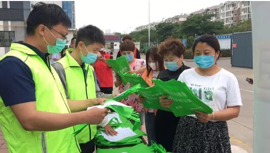 6-5 美麗中國 亞太森博在行動 活動現場,來自亞太森博和東韓家村的環保志愿者向市民分發了精心制作的環保宣傳單,宣傳單上詳細介紹了6·5世界環境日、垃圾分類、日照市垃圾分類標準以及日常生活中我們能做的環保小事,在向市民科普環保知識的同時,倡議市民從日常生活的小事做起參與到環保中來。