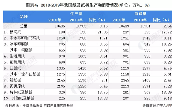 2010-2019年,紙及紙板生產量年均增長率為1.68%,消費量年均增長率為1.73%。