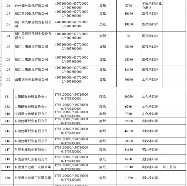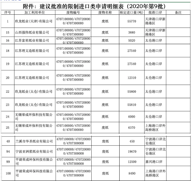 2020年第九批限制類進(jìn)口公示:廢紙核準(zhǔn)總量112.312萬(wàn)噸