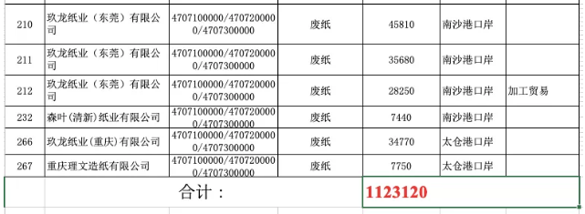 2020年7月6日,固廢中心公布的2020年第九批限制進(jìn)口類申請(qǐng)明細(xì)表顯示,審核通過(guò)了共計(jì)廢紙核定進(jìn)口總量為112.312萬(wàn)噸。