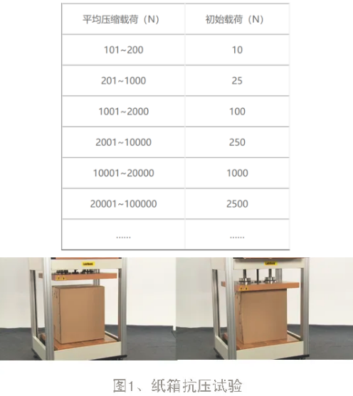 表2.瓦楞紙板的三種波形優(yōu)劣勢(shì) 2、瓦楞紙箱的長(zhǎng)、寬、高 在瓦楞用紙的材質(zhì)與楞形、波形一致的情況下,成品紙箱的長(zhǎng)寬高設(shè)計(jì)與其抗壓強(qiáng)度有著緊密的聯(lián)系。根據(jù)經(jīng)驗(yàn),瓦楞紙箱的長(zhǎng)寬之比在1~1.8之間,對(duì)其抗壓強(qiáng)度的影響最小,僅為±5%,當(dāng)二者比例為1.5左右時(shí),紙箱的抗壓強(qiáng)度最高[1]。 此外,紙箱的高度不宜過高,應(yīng)控制在350~650mm之間[2],當(dāng)高度增加時(shí),不穩(wěn)定性驟增,抗壓強(qiáng)度也會(huì)隨之下降。因此在設(shè)計(jì)紙箱的尺寸時(shí),宜綜合考量三方比例,既保障紙箱具有良好的抗壓強(qiáng)度,又能減少成本的浪費(fèi)。 3、印刷工藝 在重視品牌宣傳的今天,瓦楞紙箱的印刷設(shè)計(jì)越來越受到重視,殊不知,印刷工藝在一定程度上也會(huì)造成成品紙箱抗壓強(qiáng)度的下降。主要體現(xiàn)在兩個(gè)方面: (1)印刷壓力的影響。傳統(tǒng)印刷過程會(huì)對(duì)瓦楞紙板施以一定的壓力,若壓力過大則易將瓦楞壓潰,使其失去原有的抗壓功能; (2)油墨的浸潤(rùn)影響。油墨是印刷工藝不可或缺的組成部分,但它會(huì)對(duì)瓦楞紙板表面產(chǎn)生浸潤(rùn)作用,嚴(yán)重降低紙箱的抗壓強(qiáng)度。當(dāng)印刷面積大以及套印次數(shù)多的時(shí)候,則會(huì)使這種浸潤(rùn)作用更加明顯。 三、環(huán)境因素——濕度影響 根據(jù)上述介紹,瓦楞紙箱因采用吸水性很強(qiáng)的纖維材料,極易吸收水分,引起抗壓強(qiáng)度的下降。除了加工過程中對(duì)材料含水量的控制外,生產(chǎn)環(huán)境、存放環(huán)境、使用環(huán)境、天氣、等因素都有可能造成瓦楞紙箱的高濕環(huán)境。 根據(jù)研究資料的分析,相對(duì)濕度從40%上升到60%,抗壓強(qiáng)度下降的幅度最大,達(dá)到17%;其次是相對(duì)濕度80%至90%區(qū)間,抗壓強(qiáng)度下降了10%;下降幅度最小的是60%至80%區(qū)間,為7%[3]。因此,可以看出,瓦楞紙箱周圍的濕度越大,抗壓強(qiáng)度的損失也就越大。 四、瓦楞紙箱抗壓強(qiáng)度的精確測(cè)算 之前已經(jīng)介紹過經(jīng)典的抗壓強(qiáng)度計(jì)算公式——?jiǎng)P利卡特公式,雖然精確度已獲公認(rèn),但不可否認(rèn),這是一個(gè)基于靜態(tài)因素的測(cè)算公式,無法反映出成型工藝、印刷設(shè)計(jì)和環(huán)境因素的動(dòng)態(tài)影響,經(jīng)此公式測(cè)算的抗壓強(qiáng)度與實(shí)際仍有一定差距。因此,現(xiàn)代企業(yè)更多的是利用紙箱抗壓試驗(yàn)機(jī)進(jìn)行精確測(cè)量。標(biāo)準(zhǔn)GB/T4857.4-2003《包裝運(yùn)輸包裝件基本試驗(yàn)》規(guī)定了抗壓強(qiáng)度的測(cè)試方法,下面結(jié)合XYD-15K紙箱抗壓機(jī)進(jìn)行簡(jiǎn)單介紹。 抗壓試驗(yàn)的基本原理是將試驗(yàn)品放置于紙箱抗壓機(jī)的壓板之間進(jìn)行加壓,直至試樣損壞或達(dá)到預(yù)定載荷和位移值時(shí)為止。由此衍生為三種抗壓試驗(yàn)?zāi)J剑础岸▔毫y(cè)形變”、“定形變測(cè)壓力”和“壓潰”。具體方法如下: 1、試樣溫濕度預(yù)處理。將樣品箱置于23℃,50%RH的環(huán)境下4小時(shí)進(jìn)行試樣調(diào)節(jié)。 2、將預(yù)處理后的試樣封裝好,放置在紙箱抗壓機(jī)的下壓板中心。若采用“定壓力測(cè)形變”模式,則需設(shè)置預(yù)定壓力(“定形變測(cè)壓力”模式則需預(yù)設(shè)形變量)、初始載荷值等參數(shù),并調(diào)整高度參數(shù)至試樣高度值,其中初始載荷值的設(shè)定是為了使上壓板與試樣達(dá)到充分接觸,可參照表3進(jìn)行設(shè)置。啟動(dòng)試驗(yàn),上壓板在系統(tǒng)的控制下以適當(dāng)?shù)乃俣认蛳逻\(yùn)行,當(dāng)試樣所受的壓力達(dá)到初始載荷值時(shí),位移量自動(dòng)清零,當(dāng)壓力繼續(xù)增大至設(shè)定壓力值時(shí),儀器自動(dòng)結(jié)束試驗(yàn),并顯示試樣的變形量。而“壓潰”模式則無需壓力和位移量設(shè)置,試樣所承受的壓力值曲線不斷上升,在試樣壓潰的節(jié)點(diǎn)達(dá)到峰值后開始下降,當(dāng)壓力值降到最大值的70%時(shí),自動(dòng)結(jié)束試驗(yàn)。 表3初始載荷值