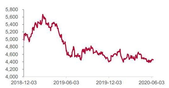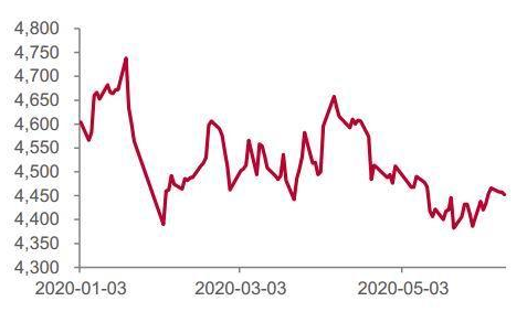 紙漿期貨自2018年11月上市以來,除了上市初期那段近千點振幅引起市場廣泛關注外,始終不溫不火。這和整個行業結構與習慣相關。首先,大型紙廠習慣長協定價,對于期貨定價抱有懷疑之心,其次,海外漿廠代理為維持定價權,也不太愿意讓價格太過透明,低迷的市場波動率也令眾多散戶投資者遠離,使得紙漿期貨市場關注度不高。 不過,隨著時間的推移,市場矛盾逐步累積。尤其是2020年初的新冠疫情,給死水一潭的市場帶入了新的變量。疫情初期,紙漿期貨表現強勁,成為少數幾個在春節長假后沒有下跌,反而反彈的期貨品種。隨后,紙漿期貨也沒有隨其他工業品反彈,維持區間震蕩。進入4月,又是紙漿期貨與其他工業品背離,多次嘗試4400的下方支撐。當前,市場糾結于到底是加拿大高成本漿廠減產導致的供應減少還是全球新冠疫情下的需求不足。 海外漿廠2021年前沒有大規模投產。從已知數據看,海外在2021年都沒有大型漿廠停產,反而在疫情影響以及成本因素下出現了多例停產。不過隨著美元大幅升值,匯率因素利于加拿大企業降低成本。 北歐低成本漿廠擴大對華出口,搶奪高成本漿廠市場。瑞典、芬蘭對華出口針葉漿同比大增,使得在海外停產背景下,中國針葉漿進口不減反增。 國內需求不濟,紙廠倒逼漿廠降價。3月在高利潤背景下,紙廠開工率高位,導致庫存累計,被迫停機減產去庫,倒逼漿廠漿價。整個造紙行業,在需求不佳的情況下,下游紙廠利潤壓縮,上游漿廠維持高利潤的結構并不健康,需要漿廠進一步讓利。 2020年投資機會展望。疫情還是最大的不確定性,但是考慮到疫情對于供應端影響更大,我們認為大邏輯上還是逢高沽空為宜。 一、走勢回顧 可能在進入2020年的之前,所有人都沒有想到,2020年的上半年中國乃至全球會經歷如此巨大的變化。2月中國國內新冠疫情爆發,3月海外疫情逐步爆發,4月美國疫情爆發,5月美國爆發種族沖突,6月過半,全球又面臨疫情二次爆發的風險。但是,如果我們回過頭來,看看紙漿期貨的行情,卻意外的發現從年初到6月,紙漿期貨價格在4400到4700這個狹窄的空間窄幅震蕩了半年。相比紙漿期貨上市初期近千點的振幅,2020年上半年的行情可以說是波瀾不驚。即使在春節長假后以及美國疫情大爆發道指暴跌后的交易日里,紙漿期貨表現依舊平靜,慣性低開后很快反彈至前收盤附近。 如果再進一步細分,2020年上半年紙漿期貨價格經歷了4個階段,先是節前因下游需求走好而一路上行至4700,隨后隨著國內新冠疫情的發酵,在節前三天開始回調,回到中樞4550-4600一線,并在節后第一天跌至震蕩區間下沿;隨后展開第三階段的反彈,至4月初再次接近4700的前高;最終因為終端需求低迷,紙廠文化紙庫存過高被迫降價出貨,引發了紙漿第四階段的回調。在這四個階段中還包含了海外漿廠因各種原因導致的停產與檢修,但是從整體來看,海外供應擾動對價格趨勢影響不大,市場更多時候是在交易國內的終端需求情況。 圖1:紙漿期貨主力合約上市以來走勢
