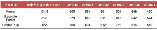 資料來源:上市公司報告,招商期貨研究所 (三)加拿大高成本漿廠徹底退出短期依舊難見 從2019年國內紙漿價格大幅下挫以來,市場就一直在討論的加拿大漿廠成本問題,從一張流傳廣泛的海外資訊機構的成本曲線圖可以發現,加拿大的針葉漿成本是最高的,普遍在600美元/噸以上。在需求放緩的背景下,正常邏輯下,將通過倒逼加拿大高成本漿廠停產來逐步出清產能。而從去年開始,零星有加拿大漿廠停產,而今年正如前文所述,加拿大漿廠出現了較為密集的停產檢修,似乎這個邏輯得到了印證。但是,如果我們仔細看加拿大漿廠的停產計劃,卻會發現,加拿大漿廠大多數都是停產檢修,基本沒有出現徹底停產出清的現象,唯一的例外是Northern pulp,不過也是因為環保的原因。那么是什么使得加拿大漿廠如此擁有韌性呢? 首先,紙漿行業或者說整個造紙行業是一個周期性行業,漿廠或者紙廠通常會經歷幾年大賺特賺的繁榮期,也會經歷虧損期,為了穩定客戶不被擠出市場,漿廠在當前困難期往往會咬緊牙關死撐。因為正如前文所述,未來并沒有大規模的產能投放,因此只要撐過此輪低迷期,或者說只要撐到其他企業產能出清,隨著需求逐步恢復,那么誰能堅持就能笑到最后。因此,加拿大漿廠誰也不愿意在現在徹底關停退出市場,因為一旦這么做了,就會永遠的失去客戶,讓出市場份額。 其次,從成本曲線看,加拿大漿廠基本成本類似,且擁有500萬到600萬噸產量供應,因此只要有一兩家加拿大大型漿廠退出市場,就會造成供應邊際上大幅收縮,只要需求不變,就會推升價格,令價格脫離成本區間。因此,加拿大漿廠誰也不愿意讓出自己的份額。 第三點,也是最重要的一點,如果我們仔細去看加拿大漿廠的財報,就會發現在經歷了去年三季度慘淡的經營后,加拿大漿廠的成本大幅降低。其中低油價以及美元大幅升值導致的加元貶值是其中一個主要的推動力。當然,漿廠通過財務處理的方法調整利潤,也是一種可能,通過去年3季度大幅調整虧損與減記以及林漿一體化下利潤分配的方式,令2020年的季報表現靚麗。就拿市場認可度相當高的Canfor為例,其2019年前兩個季度紙漿成本在620美元/噸左右,但是到第三季度公司出現巨額虧損時,其紙漿成本根據我們的計算高達719美元/噸,而到2020年一季度,其紙漿成本已經降到了540美元/噸,而其在國內平均銷售價格在570美元/噸(包換部分化機漿)。 因此,雖然加拿大紙漿依舊屬于成本較高的部分,但是期待它徹底停產產能出清的階段還為時過早。加拿大紙漿成本除了受其自身木片與人工成本的影響,更多還需要考慮美元兌加元匯率以及油價的變化。同時也是與北歐與南美低成本漿廠價格博弈的問題。如果這些國家庫存快速累積需要快速去庫,并大幅調低價格,那時可能才是要討論的真正時機。 表2:北美上市公司紙漿成本
