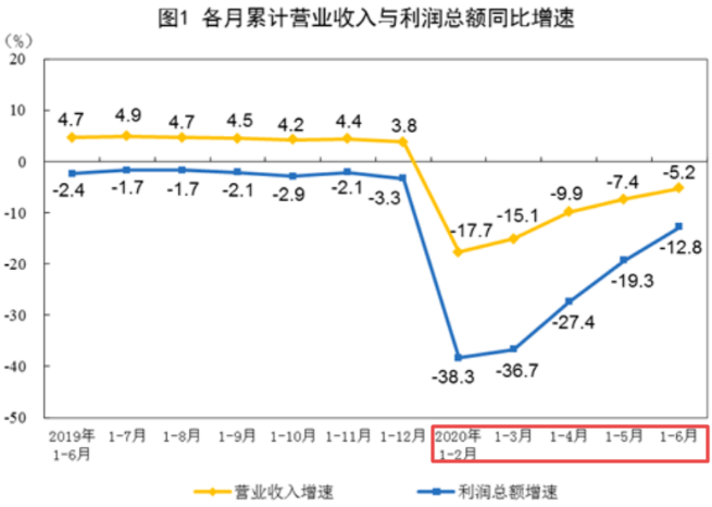 7月27日,國家統計局發布了2020年1-6月份全國規模以上工業企業利潤情況。數據顯示,全國規模以上工業企業實現營業收入46.31萬億元,同比下降5.2%;實現利潤總額25114.9億元,同比下降12.8%。