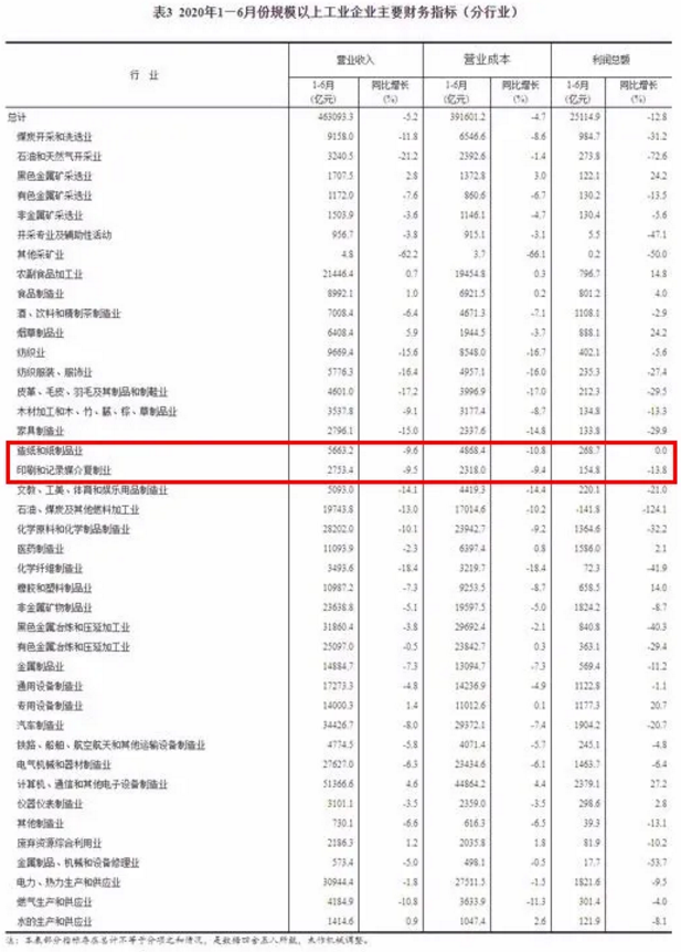 不過,隨著疫情的基本控制,造紙和紙制品業、印刷和記錄媒介復制業運行情況也逐步出現好轉,最有利的證明便是,兩大行業的在今年1-6月份的營收、利潤降幅相比今年1-5月份,均有收窄。這也意味著,今年下半年,各行業的經濟數據有望繼續回升。
