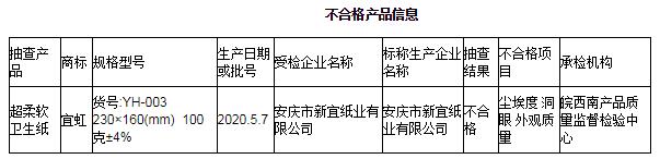 其中,抽取日用衛(wèi)生用品17批次,合格16批次,不合格1批次,不合格發(fā)現(xiàn)率5.88%。此批次不合格衛(wèi)生用品是超柔軟衛(wèi)生紙,重點對可遷移性熒光性物質(zhì)、柔軟度、塵埃度、洞眼、外觀質(zhì)量、細菌菌落總數(shù)等12個項目進行了檢驗,不合格項目為塵埃度、洞眼及外觀質(zhì)量。