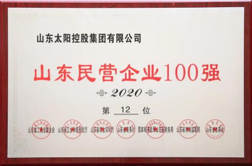 10月20日下午,山東省領軍民營企業座談會暨山東省“十強”產業民營企業10強榜單、民營企業100強發布會在濟南召開。山東太陽控股集團有限公司(以下簡稱:太陽控股集團)再次蟬聯山東民營企業100強,位列第12位,與去年相比排名提升了5個位次。省委副書記、省長李干杰出席會議并作重要講話,省人大常委會副主任、省工商聯主席王隨蓮,副省長凌文出席會議,太陽紙業副總經理陳昭軍參加會議并領取獎牌。