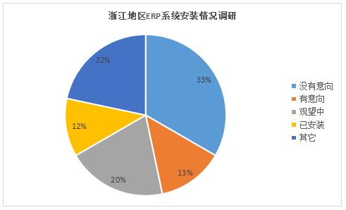 進(jìn)入數(shù)字化時(shí)代,許多傳統(tǒng)企業(yè)紛紛跳出原有發(fā)展模式,引入ERP管理系統(tǒng),通過其“供應(yīng)鏈管理”的核心思想,幫助企業(yè)改善業(yè)務(wù)流程、提高企業(yè)核心競(jìng)爭(zhēng)力。那么在包裝行業(yè),工廠安裝ERP系統(tǒng)的情況是如何?三級(jí)廠老板對(duì)ERP系統(tǒng)接受度又是如何? 近日,包裝產(chǎn)業(yè)聯(lián)盟對(duì)浙江地區(qū)近300家三級(jí)廠的ERP系統(tǒng)安裝情況進(jìn)行了抽樣調(diào)研,以進(jìn)一步了解該地區(qū)工廠ERP系統(tǒng)安裝情況,及地區(qū)工廠老板對(duì)于ERP系統(tǒng)所持態(tài)度。 數(shù)據(jù)顯示,完全沒有意向的工廠達(dá)100家,占調(diào)查樣本的三分之一;而尚在觀望中的工廠有60余家,占比20%;有安裝意向的工廠不到40家,僅占比13%;已有ERP系統(tǒng)的工廠約35家,占比只有12%。