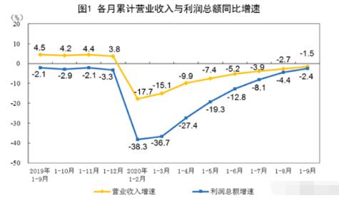 10月27日,國家統計局發布2020年1-9月份全國規模以上工業企業利潤情況。據顯示,今年前9月,全國規模以上工業企業實現營業收入74.23萬億元,同比下降1.5%;實現利潤總額43665.0億元,同比下降2.4%。
