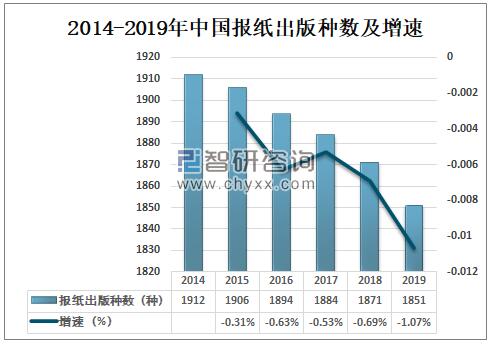 2014-2019年中國報紙出版種數及增速