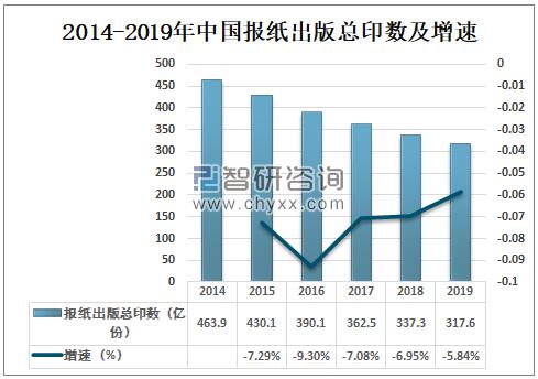 2014-2019年中國報紙出版總印數及增速