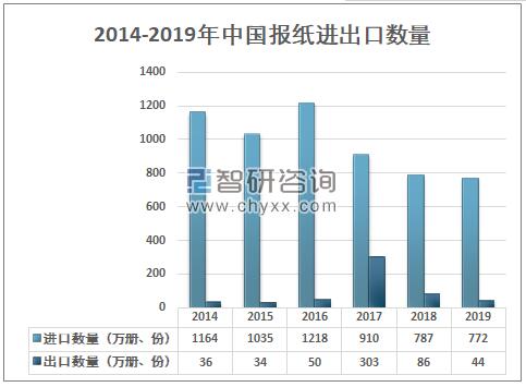 2014-2019年中國報紙進出口數量