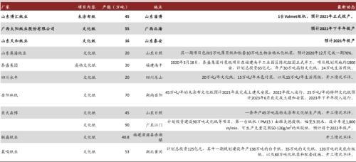 資料來源:中國固廢化學品管理網,中金公司研究部 文化紙:2021年需求回暖,盈利中樞有望抬升 2021年需求有望繼續回暖。近年來文化紙整體需求以穩為主。我們預期,2021年隨著國內學校課業回歸常態,消費需求恢復正常,文化紙需求有望恢復正常水平。同時,2021年將迎來我國建黨一百周年,屬主題圖書出版大年,我們預期黨政時政類圖書、學習材料文印需求有望維持在近年高位,對銅版紙需求形成有力支撐。 行業供給壓力有限,銅版紙產能或有邊際收縮。我們從調研了解到,在近期太陽紙業(45萬噸)和江西五星紙業(30萬噸)兩臺紙機投放后,4Q21前雙膠紙新增產能較少(且今年較多銅版紙紙機轉產雙膠紙,明年這一現象有望減少),銅版紙基本已無新增投產計劃,明年行業供給壓力整體不大。同時,白卡價格強勁,持續實現超額盈利,我們從調研了解到有部分銅版紙紙機正計劃轉產銅版卡作為白卡替代品,或使銅版紙在產產能出現一定邊際收縮。 圖表: 當前文化紙潛在在建產能較多,以雙膠紙為主