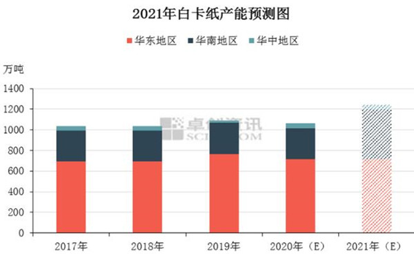 未來白卡紙產能投放仍以頭部企業擴產為主,另外良好的盈利能力,催生白卡紙新增產能,且多集中在廣西、江蘇等地。按照紙廠前期計劃,卓創預計2021年白卡紙新增產能共計120-210萬噸(視廣西太陽投產進度)。另外寧波中華預計將在2021年二季度關停,此外受2021年白卡紙行業供需格局良好影響,不排除紙廠延期投放白卡紙產能,以拉長行業景氣周期,屆時2021年白卡紙市場供應將呈現減少,供應格局可能會略顯緊張。
