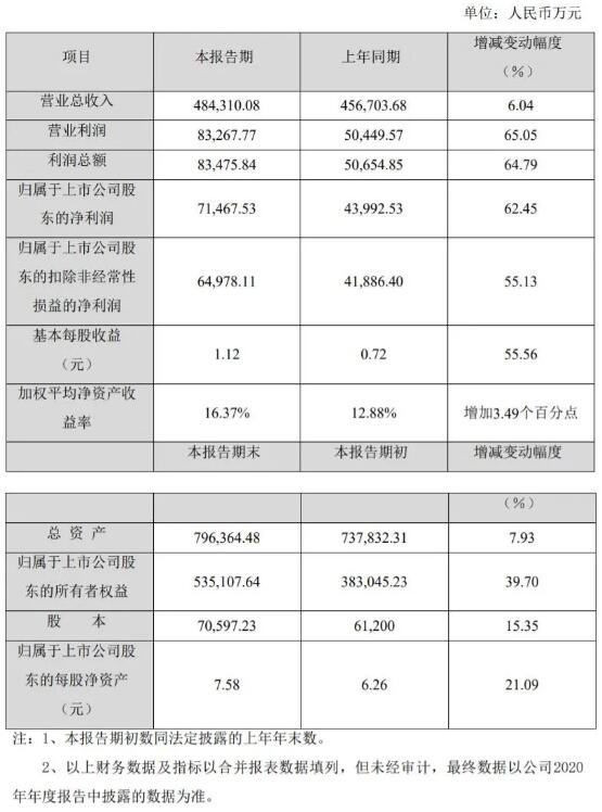 公告顯示,企業(yè)相關(guān)數(shù)據(jù)產(chǎn)生較大變動的原因如下: 1、報(bào)告期內(nèi),公司所屬多個生產(chǎn)項(xiàng)目,公司產(chǎn)品業(yè)務(wù)結(jié)構(gòu)得到進(jìn)一步優(yōu)化,綜合規(guī)模效益逐漸凸顯,單位生產(chǎn)成本下降。 2、公司積極布局和拓展新市場,研發(fā)新產(chǎn)品以及開發(fā)戰(zhàn)略性的價值客戶。報(bào)告期內(nèi),公司與眾多行業(yè)知名客戶形成了技術(shù)和市場上的全方位戰(zhàn)略性合作。 3、報(bào)告期內(nèi),因消費(fèi)升級而帶來的下游市場需求增加明顯,公司的高端紙基型醫(yī)療包裝材料和食品包裝材料銷量大幅增加。 4、2020年我國快遞業(yè)務(wù)量完成830億件,進(jìn)而帶來公司物流相關(guān)紙基材料銷量增速較快。 5、報(bào)告期內(nèi),公司進(jìn)一步加大研發(fā)投入,公司多款可替代塑料用紙產(chǎn)品研發(fā)成功并投入市場。同時,公司的電解電容器紙預(yù)計(jì)實(shí)現(xiàn)銷售收入較上年同期具有較快的增長。 6、相比2019年同期,公司持續(xù)的降本增效措施的有效實(shí)施,促使報(bào)告期內(nèi)公司整體毛利率提升。 五洲特紙 2020年,五洲特紙實(shí)現(xiàn)營業(yè)總收入26.35億元,同比增長10.92%;營業(yè)利潤4.24億元,同比增長73.73%;利潤總額4.53億元,同比增長68.73%;歸屬于上市公司股東的凈利潤3.46億元,同比增長73.44%;歸屬于上市公司股東的扣除非經(jīng)常性損益的凈利潤3.2億元,同比增長82.15%;基本每股收益約0.95元。 利潤增長主要原因?yàn)椋?/p> 1.報(bào)告期內(nèi),公司全資子公司江西五星紙業(yè)有限公司(“江西五星”)年產(chǎn)5萬噸轉(zhuǎn)移印花紙于2020年4月份投產(chǎn)并實(shí)現(xiàn)銷售;江西五星年產(chǎn)15萬噸格拉辛紙2020年穩(wěn)定運(yùn)行,江西五星規(guī)模效益逐漸開始顯現(xiàn)。 2.報(bào)告期內(nèi),公司主要原材料木漿市場價格基本低位運(yùn)行,營業(yè)成本降低,促使報(bào)告期內(nèi)公司整體毛利率提升。 3.報(bào)告期公司積極應(yīng)對疫情,采取強(qiáng)有力措施,保證連續(xù)生產(chǎn)、穩(wěn)定銷售,有效保障了公司正常經(jīng)營及盈利。
