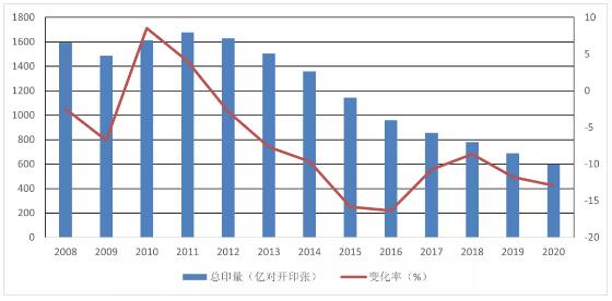 圖1 2008-2020年全國(guó)報(bào)紙印刷總量 從圖1數(shù)據(jù)來(lái)看,全國(guó)報(bào)紙年度總印刷量在經(jīng)歷了2008、2009兩年的下降和2010、2011兩年的增長(zhǎng)后,近年來(lái)又呈現(xiàn)出連續(xù)下降的趨勢(shì)。2008、2009年金融危機(jī)波及報(bào)紙印刷行業(yè),印刷總量大幅下滑。隨著經(jīng)濟(jì)復(fù)蘇,2010、2011年出現(xiàn)短暫復(fù)蘇,但是自2012年開(kāi)始又出現(xiàn)9連降。而2020年下降達(dá)到12.92%,已經(jīng)連續(xù)兩年出現(xiàn)兩位數(shù)的下滑。 報(bào)告顯示,全國(guó)報(bào)紙印刷總量從1994年開(kāi)始有數(shù)據(jù)統(tǒng)計(jì),從當(dāng)時(shí)的310億對(duì)開(kāi)張?jiān)鲩L(zhǎng)到最高值2011年時(shí)的1678億對(duì)開(kāi)張。其中,從1997年到2004年年均環(huán)比增長(zhǎng)曾經(jīng)達(dá)到兩位數(shù)。 2020年報(bào)紙印量的600億對(duì)開(kāi)張是什么水平呢?從往年的統(tǒng)計(jì)數(shù)據(jù)來(lái)看,1999年的報(bào)紙印量為637億對(duì)開(kāi)張,與2020年的數(shù)據(jù)較為接近,報(bào)紙印量重回21年前的水平。 都市類報(bào)紙受沖擊嚴(yán)重,多家報(bào)紙宣布休刊或停刊 報(bào)告指出,2020年初突如其來(lái)的新冠疫情,給國(guó)民經(jīng)濟(jì)和社會(huì)生活都帶來(lái)不小的影響,報(bào)紙出版發(fā)行也受到較大沖擊,特別是對(duì)都市類報(bào)紙的影響更為明顯,所以2020年與其它年份在報(bào)紙印刷總量變化上的可比性相對(duì)較低。但依然能顯示出報(bào)紙發(fā)展的一定規(guī)律。 近年來(lái),國(guó)內(nèi)有大量報(bào)紙,特別是同質(zhì)化嚴(yán)重而消耗較多資源的都市類報(bào)紙,相繼休刊或停刊,其中包括《京華時(shí)報(bào)》《東方早報(bào)》《新聞晚報(bào)》《北京晨報(bào)》《法制晚報(bào)》等在內(nèi)的多家知名報(bào)紙。據(jù)《中國(guó)傳媒風(fēng)云(2017—2018)》不完全統(tǒng)計(jì),從2017年1月1日到2019年1月31日的短短兩年內(nèi),國(guó)內(nèi)已有69家報(bào)紙停刊休刊。 2020年年底和2021年年初,又有多家報(bào)紙,如《松原晨訊》《遵義晚報(bào)》《銅都晨刊》《都市資訊報(bào)》《德陽(yáng)晚報(bào)》《廣元晚報(bào)》《皖北晨報(bào)》《皖東晨刊》《益陽(yáng)城市報(bào)》等,宣布休刊或停刊。據(jù)不完全統(tǒng)計(jì),僅在2021年元旦前,就有近30家紙質(zhì)媒體宣布休刊或停刊,有些甚至連休刊詞都沒(méi)有留下。熬過(guò)了新冠疫情,但終究沒(méi)有熬過(guò)市場(chǎng)大環(huán)境的發(fā)展。同時(shí),也有更多的報(bào)紙由原來(lái)的日刊轉(zhuǎn)為周刊,甚至月刊。 上游報(bào)紙出版發(fā)行量的減少,直接導(dǎo)致報(bào)紙印量的下降。早在多年前,《印刷經(jīng)理人》雜志在統(tǒng)計(jì)“中國(guó)印刷包裝企業(yè)100強(qiáng)”時(shí),每年都會(huì)有多家報(bào)紙印刷企業(yè)入選,但近幾年來(lái)已經(jīng)難覓蹤影。一些報(bào)紙印刷企業(yè),在面臨報(bào)紙印量下滑危機(jī)時(shí),不斷拓展印刷品類,向商業(yè)印刷、包裝印刷進(jìn)軍,引進(jìn)數(shù)字印刷設(shè)備,嘗試多種印刷方式等做法,不斷探索多元化發(fā)展,也取得了一定的成績(jī)。 2021年,預(yù)計(jì)對(duì)于報(bào)紙印刷企業(yè)來(lái)說(shuō),依舊是艱難的一年。從總體趨勢(shì)看,雖然疫情對(duì)于全國(guó)經(jīng)濟(jì)發(fā)展的影響逐漸散去,我國(guó)經(jīng)濟(jì)活動(dòng)正逐漸恢復(fù)甚至?xí)^(guò)疫情前水平,但由于新興媒體對(duì)于傳統(tǒng)媒體的沖擊仍在繼續(xù),以抖音、快手為主要力量的視頻媒體發(fā)展快速,占據(jù)了公眾相當(dāng)多的注意力資源,而以今日頭條、微信公眾號(hào)為代表的基于算法和社交媒體裂變的新興媒體發(fā)展勢(shì)頭依然強(qiáng)勁,對(duì)于報(bào)紙?jiān)x者群的吸收仍在加速。 即使疫情的影響已經(jīng)完全消除,但轉(zhuǎn)移的注意力很難再回歸傳統(tǒng)紙質(zhì)媒體。在多種因素的推動(dòng)下,2021年全國(guó)報(bào)紙印量持續(xù)下滑仍是大概率事件,但降幅有收窄、甚至有重回個(gè)位數(shù)的可能。展望未來(lái),我國(guó)報(bào)紙印刷總量能否止住目前快速下滑的頹勢(shì),進(jìn)入相對(duì)穩(wěn)定的態(tài)勢(shì),仍待進(jìn)一步觀察,讓我們拭目以待。