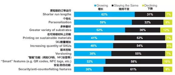 從生活方式的轉(zhuǎn)變到新印刷技術(shù)的發(fā)展,再到消費(fèi)者需求等各方力量的匯總,正在不斷擴(kuò)大瓦楞包裝的應(yīng)用范圍,如將其保護(hù)產(chǎn)品的作用擴(kuò)大到了銷售產(chǎn)品。從普通的黃板運(yùn)輸紙箱,到具有高質(zhì)量圖形和印刷裝飾的產(chǎn)品容器的轉(zhuǎn)變,瓦楞包裝正為包裝印刷商/加工商提供更多機(jī)會(huì)。 用在瓦楞紙板或預(yù)印面紙上直接印刷的基材、油墨、裝飾技術(shù)和印刷噴頭的進(jìn)步,使品牌所有者可以使用包裝產(chǎn)品來增強(qiáng)客戶體驗(yàn),并樹立品牌知名度。瓦楞包裝為這些企業(yè)提供了反復(fù)建立品牌知名度和聲譽(yù)的機(jī)會(huì),因?yàn)橥呃惆b從供應(yīng)商,到發(fā)貨,到最終目的地都需要經(jīng)過很多人的努力。能夠更有效地增強(qiáng)瓦楞包裝的外觀,以及廣泛使用的能力,使其成為品牌、促銷和銷售的理想工具。 據(jù)世界造紙與包裝協(xié)會(huì)稱,如今的瓦楞紙箱比在其164年歷史中的任何時(shí)候都得到更廣泛的使用,這主要是由于電商增長(zhǎng)。實(shí)際上,該組織認(rèn)為瓦楞材料已經(jīng)進(jìn)入了創(chuàng)造和使用的黃金時(shí)代。由Memjet贊助的這份特別報(bào)告結(jié)合耐普克研究公司的調(diào)查數(shù)據(jù)、包裝印象的行業(yè)報(bào)告和二次研究,以展示噴墨印刷、品牌所有者的需求和市場(chǎng)趨勢(shì)如何提升瓦楞包裝的質(zhì)量、作用和機(jī)會(huì)。 瓦楞包裝數(shù)字印刷的機(jī)會(huì) 瓦楞紙板是最常用的運(yùn)輸材料,印刷技術(shù)的進(jìn)步正在擴(kuò)大其在產(chǎn)品包裝中的營(yíng)銷作用。美國的纖維紙箱協(xié)會(huì)的市場(chǎng)數(shù)據(jù)突出了瓦楞包裝的流行和使用。該組織報(bào)告說,在美國,每年交付的瓦楞包裝達(dá)到了390億個(gè),預(yù)計(jì)美國的瓦楞包裝和展示市場(chǎng)的規(guī)模為352億美元。 耐普克的研究調(diào)查表明,品牌所有者對(duì)使用瓦楞包裝非常感興趣,而且廢紙時(shí)機(jī)已經(jīng)非常成熟,他們發(fā)現(xiàn)品牌擁有者對(duì)瓦楞包裝的使用正在增長(zhǎng)。此外,不少品牌所有者報(bào)告稱其已經(jīng)采用了數(shù)字彩色印刷機(jī)以印刷瓦楞包裝。 數(shù)字印刷鞏固了瓦楞包裝作為一種營(yíng)銷工具的吸引力,因?yàn)樗Y(jié)合了高端印刷質(zhì)量和短版印刷的成本效益。伴隨數(shù)字印刷技術(shù)的日益成熟,越來越多的供應(yīng)商可以提供數(shù)字印刷瓦楞包裝,隨之而來的是瓦楞包裝也越來越多地交付給品牌商。以前,由于需要專門的印刷和裝飾設(shè)備,因此瓦楞包裝市場(chǎng)很難采用噴墨印刷。 另外,數(shù)字印刷為品牌擁有者提供了直接在箱板紙或預(yù)印面紙上直接印刷,以生產(chǎn)瓦楞紙板的新可能性。新的商機(jī)包括經(jīng)濟(jì)高效地生產(chǎn)小批量訂單,改進(jìn)圖形質(zhì)量,添加更多顏色(包括特殊效果),減少周轉(zhuǎn)時(shí)間,啟用更多版本,以及具有測(cè)試包裝概念的能力。 盡管瓦楞紙數(shù)字印刷開始日益盛行,但大多數(shù)瓦楞包裝使用的還是膠印或者柔印。柔印通常用于直接在瓦楞紙板上印刷一種或兩種顏色。膠印通常用于裱貼到瓦楞芯紙上的面紙上進(jìn)行圖形印刷。耐普克/Memjet最近對(duì)瓦楞包裝印刷商/加工商的研究調(diào)查顯示為什么數(shù)字印刷是一種有吸引力的選擇。受訪者表示對(duì)短版印刷、庫存單位(SKU)數(shù)量增加、版本控制和安全功能(見下圖)的需求不斷增長(zhǎng),所有這些領(lǐng)域都非常適合數(shù)字印刷。更高的印刷質(zhì)量和短版的成本效率相結(jié)合,正在提高數(shù)字印刷瓦楞包裝的使用。