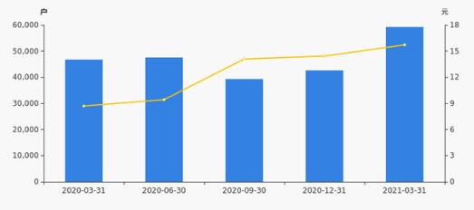 2020年3月31日至今,公司股東戶數顯著增長,區間漲幅為26.64%。2020年3月31日至2021年3月31日區間股價上漲80.77%。