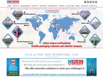 金達爾薄膜有限公司(indalPolyFilmsLimited)是金達爾集團旗下子公司,成立于1985年,總部位于印度新德里。金達爾薄膜有限公司以包裝和電影業(yè)務(wù)而聞名。它是聚酯和聚丙烯生產(chǎn)商,也是印度頂級電影制造公司之一。他們幾十年來一直在這個行業(yè),并且是該行業(yè)的領(lǐng)導(dǎo)者之一。 5、Uflex