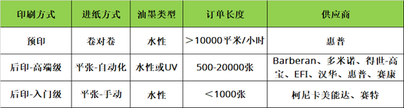 第一代的噴墨印刷機(jī)已經(jīng)安裝并運(yùn)行了很長(zhǎng)一段時(shí)間,供應(yīng)商開(kāi)始推出其第二代設(shè)備。這證明該技術(shù)已經(jīng)成熟,并且用戶(hù)現(xiàn)在會(huì)發(fā)現(xiàn)更多經(jīng)過(guò)測(cè)試和生產(chǎn)的設(shè)備。 市場(chǎng)上有許多多通道的噴墨印刷機(jī)(又名大幅面印刷機(jī)),大多數(shù)平板機(jī)型可以印刷瓦楞紙。但是,由于速度較慢,且缺乏紙張傳輸自動(dòng)化的功能使其僅適用于非常短版的訂單,例如測(cè)試印刷、校樣和產(chǎn)品打樣。這可能更適合于嘗試進(jìn)入瓦楞紙數(shù)字印刷市場(chǎng),但如果需要的是全面生產(chǎn)的印刷機(jī),則需要不同的經(jīng)濟(jì)性、技能和工作流程。 03、預(yù)印式瓦楞紙數(shù)字印刷機(jī) 惠普是唯一的噴墨預(yù)印設(shè)備供應(yīng)商。 最初,HP提供了PageWideT400,作為用于面紙印刷的T400S。首次安裝于2014年在捷克共和國(guó)。盡管T400的幅寬令人印象深刻,為1m,但市場(chǎng)仍在尋找更廣泛的解決方案。2016年,惠普與高寶合作推出了T1100,卷筒紙寬度為2.8米,速度高達(dá)183米/分鐘,生產(chǎn)速度達(dá)30000平方米/小時(shí)。隨著六色型號(hào)T1170和T1190的推出,該印刷機(jī)系列在2018年得到了擴(kuò)展,后者的生產(chǎn)速度提高到了305m/min。顯然,T1100不適合小批量的生產(chǎn)商。 但是,瓦楞紙行業(yè)的大型生產(chǎn)商正在加緊準(zhǔn)備,并提供更多的短版印刷。2021年,佐治亞太平洋公司購(gòu)買(mǎi)了其第三臺(tái)HPPageWideT1100系列印刷機(jī)。 04、 后印式瓦楞紙數(shù)字印刷機(jī) EFI是最早提供用于瓦楞紙后印數(shù)字印刷機(jī)的供應(yīng)商之一,該公司于2016年推出NozomiC18000。EFI擁有迄今為止最大的安裝數(shù)量,目前大概已安裝35臺(tái)印刷機(jī)。甚至有部分用戶(hù)已經(jīng)運(yùn)行多臺(tái)EFI的NozomiC18000,最高的擁有四臺(tái)!疫情期間,印刷量在2020年比2019年增長(zhǎng)了41%,用戶(hù)通常每月生產(chǎn)40萬(wàn)-100萬(wàn)平方米。Nozomi可以選擇白色和2種其他特殊顏色以擴(kuò)展色域。去年,該公司發(fā)布了更新版本的NozomiC18000Plus,最近還發(fā)布了一個(gè)針對(duì)POS的版本。Plus版本可對(duì)現(xiàn)有客戶(hù)的設(shè)備進(jìn)行現(xiàn)場(chǎng)升級(jí)。 惠普是唯一活躍于預(yù)印和后印的數(shù)字印刷設(shè)備供應(yīng)商。PageWideC-500于2017年開(kāi)始交付,多臺(tái)印刷機(jī)于2018年安裝。在吸取了一系列早期用戶(hù)運(yùn)行的經(jīng)驗(yàn)之后,惠普現(xiàn)在又在加速推廣,第一位客戶(hù)CompanyBox在今年2月份投資了他們的第2臺(tái)設(shè)備。 得世和高寶都開(kāi)發(fā)了瓦楞紙數(shù)字印刷機(jī),目前該系列的設(shè)備由他們的合資企業(yè)銷(xiāo)售。首批客戶(hù)的技術(shù)反饋為該印刷機(jī)的不斷升級(jí)提供了源泉,如今合資企業(yè)所推出的印刷機(jī)正在啟動(dòng)。作為完整版本SPC130自動(dòng)化生產(chǎn)線(xiàn)的低價(jià)版本,SPC130ECO仍具有自動(dòng)進(jìn)紙器,以及可升級(jí)至頂級(jí)機(jī)型的功能。CorruJET170機(jī)基于SPC130的進(jìn)紙器,幅面更大。目前,在客戶(hù)現(xiàn)場(chǎng)運(yùn)行的SPC130已經(jīng)有5臺(tái),并且還有更多機(jī)器處于安裝計(jì)劃中。在第一個(gè)beta客戶(hù)站點(diǎn)的測(cè)試成功完成之后,CorruJET現(xiàn)在也完全可以進(jìn)行工業(yè)化生產(chǎn)。 多米諾在市場(chǎng)上起步較晚,并于2020年推出了X630i。多米諾開(kāi)發(fā)了一種水性油墨套裝,能夠在各種基材上印刷。第一臺(tái)設(shè)備已在美國(guó)的一家三級(jí)廠(chǎng)——IndependentII運(yùn)行。這有助于該工廠(chǎng)減少柔版印刷機(jī)上的短版訂單印量,并使數(shù)字印刷和柔版印刷兩者更具利潤(rùn)。第二臺(tái)X630i則在另外一家工廠(chǎng)運(yùn)行,目前X630i也已完全投放市場(chǎng)。 隨著Idera的發(fā)布,賽康在2020年也進(jìn)入了瓦楞紙的數(shù)字印刷市場(chǎng)。第一臺(tái)印刷機(jī)安裝在比利時(shí)里爾的演示中心。疫情在某種程度上延遲了產(chǎn)品上市,但賽康計(jì)劃在2021年安裝首臺(tái)設(shè)備。雖然硬件基于深圳漢華體系,但賽康在其母公司富林特集團(tuán)的支持下,開(kāi)發(fā)了新的油墨墨水和軟件,以實(shí)現(xiàn)最佳的生產(chǎn)率和質(zhì)量。 柯尼卡美能達(dá)最近于2021年在歐洲和前一年在美國(guó)發(fā)布了PKG-675i。PKG-675i由MTEX代工,柯尼卡美能達(dá)現(xiàn)在擁有獨(dú)家經(jīng)銷(xiāo)權(quán)。該設(shè)備的目標(biāo)市場(chǎng)是入門(mén)級(jí)市場(chǎng)。投資額低于20萬(wàn)歐元,該印刷機(jī)的價(jià)格明顯低于其他設(shè)備,但自動(dòng)化程度和吞吐量也有所降低。不過(guò),Memjet噴頭提供了很高的成像分辨率,并且該設(shè)備非常緊湊。柯尼卡美能達(dá)已經(jīng)在美國(guó)安裝了設(shè)備,并且現(xiàn)在開(kāi)始在歐洲發(fā)貨。 下表提供了目前市面上的單通道后印式數(shù)字印刷機(jī)的概況:  05、投資注意事項(xiàng) 這么多的選擇,可能會(huì)令人迷惑。 以下是選擇正確的瓦楞紙數(shù)字印刷機(jī)的一些注意事項(xiàng): 很少有人拿數(shù)字印刷來(lái)替代柔印,更多針對(duì)的是短版印刷訂單。將短版印刷轉(zhuǎn)向噴墨印刷.可以幫助提高