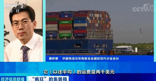 中國物流與采購聯合會國際貨代分會會長康樹春:從中國運到美國的一個集裝箱以往平均運費是2000美元,F在漲到2萬美元甚至更高,中間存在著10倍的利潤空間。即使說運回成本很高,去程運費利潤空間可以覆蓋它的空箱返程成本,所以現在都在想辦法把海外的空箱調回。