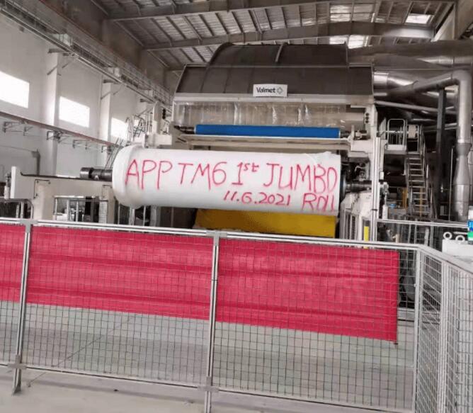 近日,金紅葉紙業(yè)(湖北)有限公司三期項目的TM6衛(wèi)生紙機(jī)順利開機(jī)出紙。該紙機(jī)幅寬5600mm,設(shè)計車速2000m/min,年產(chǎn)能為6萬t,紙機(jī)供應(yīng)商為維美德。三期項目的另一臺紙機(jī)TM5也已安裝完成,近期將開機(jī)投產(chǎn)。