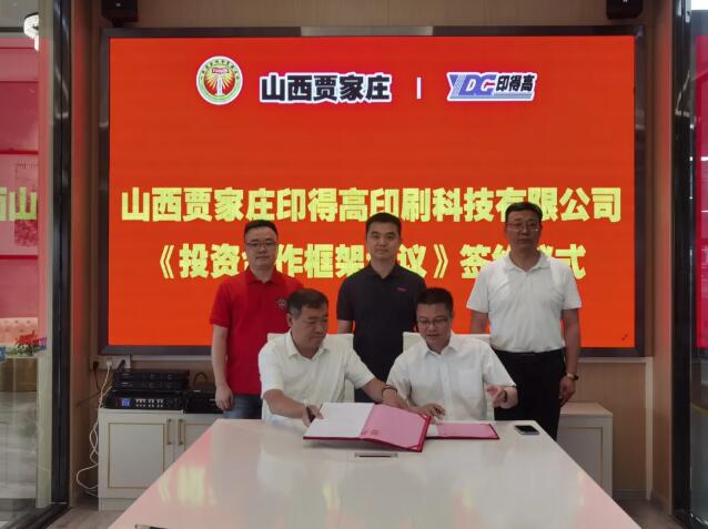 調研考察后,雙方就山西賈家莊印得高印刷科技有限公司《投資合作框架協議》進行簽約,山西省汾陽市賈家莊村黨委書記邢萬里、廣東省佛山市印得高印刷有限公司董事長李志華參加了本次簽約儀式。
