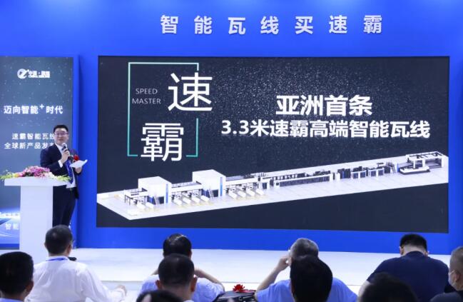 (中國•振遠CEO朱少虎上臺分享) 隨后,中國•振遠創始人朱少虎上臺為我們回顧了速霸智能瓦線的發展歷程:2016年誕生,2017年的上海發布會上速霸300智能瓦線順利面世,一舉打破了高端瓦線依靠歐美進口的現狀,再到2018年成功推出第二代速霸300S,2019年上海展會期間速霸400正式面世,乃至2020年第三代速霸智能瓦線全面升級,速霸的每一步改變,都為這個行業帶來一點不一樣。 振遠速霸作為中國包裝行業的一員,一直在加大研發,把智能瓦線做專做強,為中國2025制造做好了全面準備。速霸家族也終于迎來了更高速,更智能,更寬的新成員——亞洲首條3.3米速霸智能瓦線。 全新3.3米速霸智能瓦線攜 四大創新 五大突破 六大唯一 震撼上市!