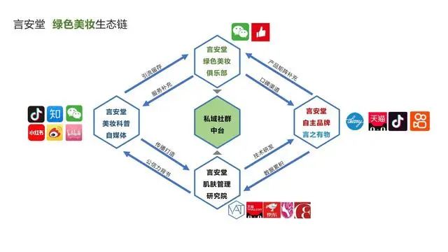注:上圖為言安堂體系 依托C端用戶,言安堂建立有10w+的用戶健康檔案數據、300+社群和6w+私域流量。通過社群運營私域流量,在輸出專業知識和課程的同時,言安堂和用戶達成了品牌共創的合作模式,部分用戶可以參與產品開發與測評、管理社群和品牌宣傳并獲得銷售分成。 2019年,言安堂建立自主品牌“言之有物”,通過前期自有用戶檔案數據和更廣人群的調研,以及研發工程師加入社群,在研發中快速獲得用戶反饋的研發模式,實現精準研發和產品共創。目前,言之有物的SKU達到約20個,以功能性精華為主,定價在200元左右。 在言安堂肌膚管理研究院下,目前打造有50套知識體系的圖譜和200+節的培訓課程體系。為言安堂自媒體輸出提供支持的同時,也面向行業、MCN機構、美妝博主、渠道店鋪等開放,提供培訓服務。此外,言安堂的用戶數據體系也會向合作品牌開放,用于共同開發新產品。目前言安堂在全網積累有200w+粉絲、20w+會員。 阿普塔和言安堂雙方就環保趨勢方面達成一致。一方面,在自媒體端,言安堂將加大環保包裝趨勢的輸出;同時,言安堂也將在電商端開啟空瓶回收,和用戶建立更深連接;另一方面,言安堂自主品牌言之有物也將嘗試可循環/可降解包裝材料。 創始人趙國慶表示,國內護膚品牌溢價嚴重,大部分費用被用于品宣,產品真正價值和實際定價不成正比,而推廣費用的部分實際上可以用于環保。言安堂的優勢在于通過私域已經積累了大批用戶數據,未來也將拓展公域流量,形成公私兩域的互動模式,提升自身平臺能力。言安堂也將持續關注成分護膚向快樂護膚轉變的趨勢,以功能成分為基礎點,從細分場景和人群出發,提供定制化服務。 團隊方面,創始人趙國慶畢業于復旦大學/新加坡國立大學MBA,曾任聯合利華研發工程師,擁有多年護膚研發、供應鏈經驗。