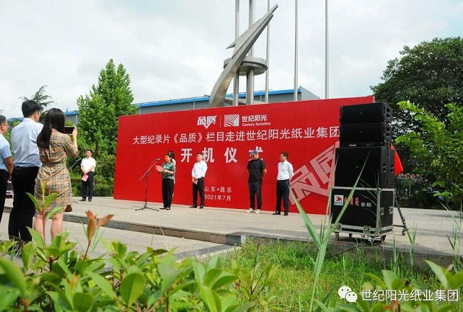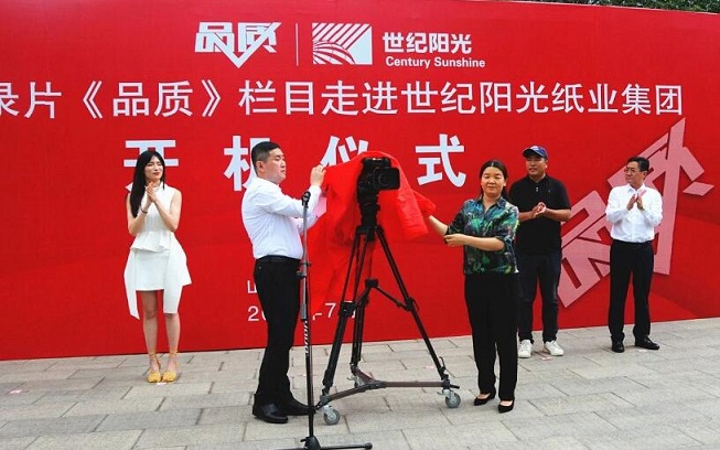 7月27日上午,央視大型紀錄片《品質》欄目走進世紀陽光紙業集團開機儀式在集團公司“世紀騰飛”雕塑前舉行。昌樂縣副縣長郭雪梅,昌樂經濟開發區黨工委書記、管委會主任張繼軍,央視《品質》欄目華北區選題中心主編李磊、導演肖國旺、制片總監孔丹丹,集團董事長王東興及部分中高層、員工代表等數百人共同見證了這一重要時刻。