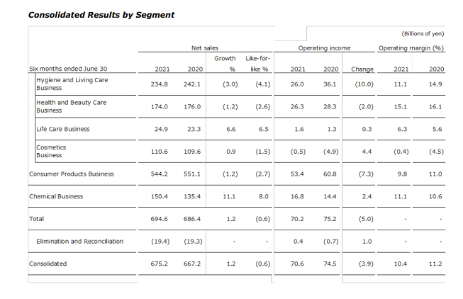 8月3日,花王集團公布2021年上半年度財報。財報顯示,自2021年1月1日至6月30日,花王集團凈銷售額為6752億日元(約391億人民幣),較去年同比增長1.2%;凈收入為535億日元(約31億人民幣),較去年同比增長3.7%。