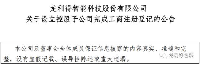 據悉,龍利得智能科技(河南)有限公司由龍利得智能科技股份有限公司與新鄉市平創投資有限公司共同投資設立,擬在平原城鄉一體化示范區投資建設“綠色智能文化科創園項目”。 該項目聚焦于綠色環保數字彩印、高級瓦楞工業終端產品智能制造,主要建設內容包括定制廠房、實教基地、實驗中心、培訓中心、研發中心、營運中心、貿易中心、數字平臺中心在內的12-15萬平方米基建工程。 項目建成后,將有效降低龍利得智能制造業務的綜合生產成本,更好地把握包裝印刷行業的發展機遇,有利于公司在中西部地區業務的進一步拓展,提升公司核心競爭力和行業影響力。