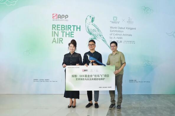 本次展覽中,還專門設立了“‘紙’為公益”區域,阿南老師以循環再生的環保方式復原已然滅絕的一只絕美鳥類,并將其作為捐贈義賣品。金光集團出資買下該件獨一無二的藝術品后,義賣所得將全部捐贈給SEE基金會“任鳥飛”項目。該項目是守護中國最瀕危水鳥及其棲息地的綜合性生態保護項目。