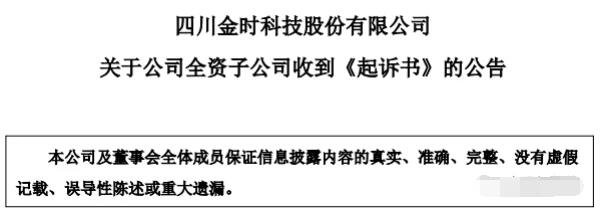 9月27日,四川金時科技股份有限公司發布公告稱,公司全資子公司四川金時印務有限公司收到湖南省耒陽市人民檢察院《起訴書》(耒檢二部刑訴〔2021〕Z99 號)。
