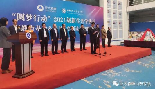10月21日上午,亞太森博“圓夢行動”2021級新生開學典禮在日照職業技術學院格物樓大廳舉行。齊魯工業大學、日照市委統戰部、日照市教育局、日照職業技術學院、日照經濟技術開發區管委及亞太森博(山東)漿紙有限公司相關領導,23名來自日照、臨沂、濰坊等地的新生以及往屆“圓夢”學生代表齊聚一堂,共同憧憬美好未來。