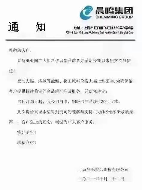 隨著原材料成本、用電成本、能源成本急速上漲,二級(jí)紙板廠也頂不住了!從10月20日開(kāi)始陸續(xù)傳出漲價(jià)函。持續(xù)不斷的漲價(jià),如果從9月開(kāi)始算,已經(jīng)整整6輪。