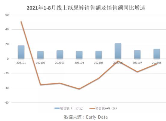 1-8月紙尿褲線上銷售額下跌15.3%