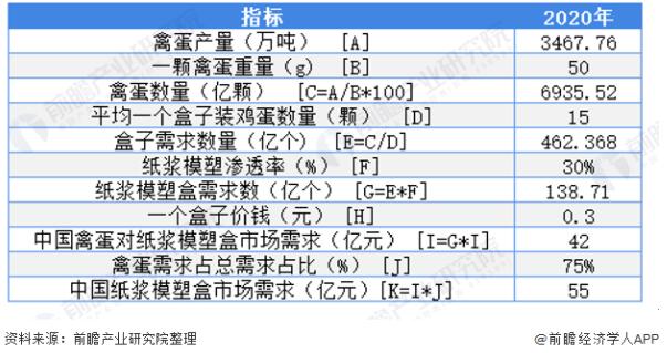 3、中國(guó)紙漿模塑市場(chǎng)規(guī)模約50億元 雞蛋是全球紙漿模塑的主要應(yīng)用領(lǐng)域,而中國(guó)是全球最大的雞蛋產(chǎn)量國(guó)。根據(jù)中國(guó)畜牧業(yè)協(xié)會(huì)禽業(yè)分會(huì),2020年中國(guó)蛋雞的雞蛋產(chǎn)量平穩(wěn)增長(zhǎng),2020年中國(guó)蛋雞的雞蛋產(chǎn)量達(dá)1895.65萬(wàn)噸,較2019年增加了24.48萬(wàn)噸,同比增長(zhǎng)1.31%。