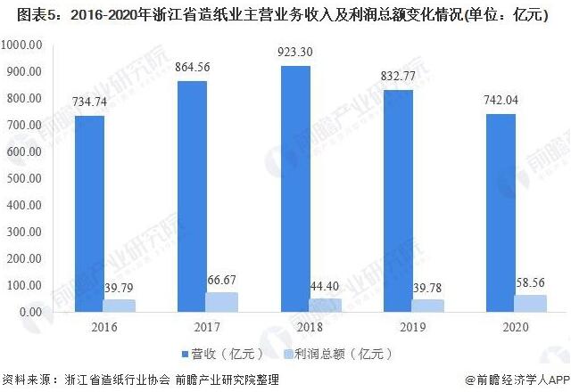 浙江造紙業(yè)利潤(rùn)逆勢(shì)回升 從行業(yè)經(jīng)營(yíng)效益來(lái)看,2016年以來(lái),浙江省造紙業(yè)主營(yíng)收入呈現(xiàn)先升后降的變化趨勢(shì),2020年,全省造紙業(yè)實(shí)現(xiàn)營(yíng)收742.04億元,同比下降10.9%。 在利潤(rùn)總額方面,在經(jīng)歷2018-2019年的連續(xù)下滑之后,2020年,隨著浙江省造紙業(yè)產(chǎn)業(yè)結(jié)構(gòu)調(diào)整初見(jiàn)成效,利潤(rùn)總額出現(xiàn)強(qiáng)勢(shì)反彈,全年實(shí)現(xiàn)利潤(rùn)總額58.56億元,同比增長(zhǎng)47.2%。