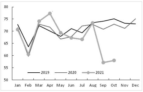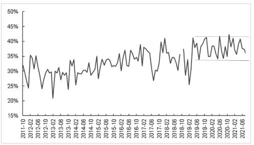 △圖為全球針葉漿廠家?guī)齑?/p> 國(guó)內(nèi)進(jìn)口量占比相對(duì)穩(wěn)定 國(guó)內(nèi)針葉漿90%以上依賴進(jìn)口。進(jìn)口量的多寡意味著當(dāng)期供應(yīng)量的多寡。2021年,我國(guó)紙漿進(jìn)口量有所下降。截至9月,針葉漿進(jìn)口量累計(jì)同比下降0.8%,闊葉漿進(jìn)口量累計(jì)同比下降3.9%。從全年角度看,針葉漿和闊葉漿進(jìn)口量在2021年均呈前高后低走勢(shì)。 2019年開始,全球針葉漿出運(yùn)量緩慢下降,而我國(guó)針葉漿進(jìn)口量占全球出運(yùn)量的比重相對(duì)穩(wěn)定。可以看出,第一,我國(guó)沒(méi)有額外的資源爭(zhēng)奪;第二,我國(guó)的針葉漿供應(yīng)基本跟隨全球市場(chǎng)。根據(jù)前述對(duì)出運(yùn)量的判斷,2022年年初國(guó)內(nèi)針葉漿進(jìn)口量將增加,但從全年角度來(lái)說(shuō),依舊保持平穩(wěn)狀態(tài)。