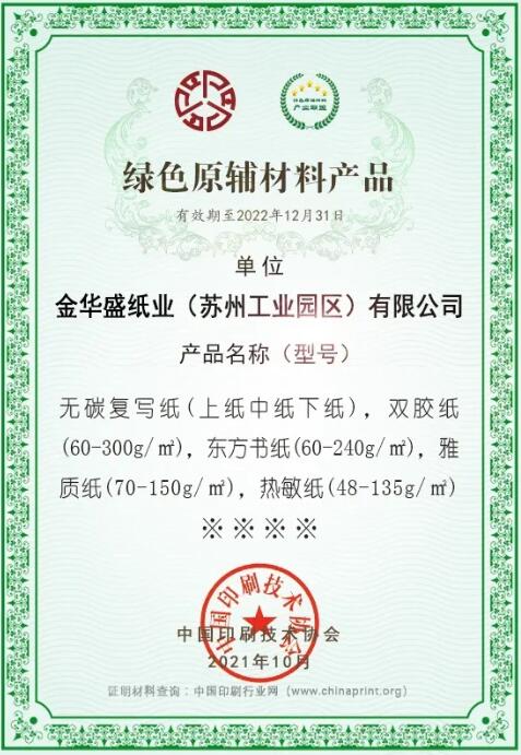 APP旗下海南金海漿紙業有限公司、金東紙業(江蘇)股份有限公司、金華盛紙業(蘇州工業園區)有限公司共同入選《綠色原輔材料產品目錄》。