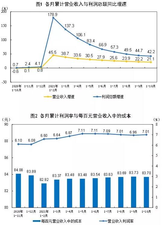 2021年1—10月份全國規模以上工業企業利潤同比增長42.2%