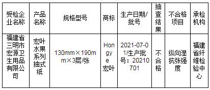 表2福建省紙巾紙產(chǎn)品質(zhì)量省級監(jiān)督抽查結(jié)果(不合格)