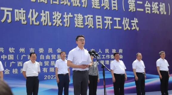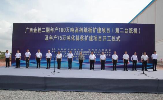 2022年5月30日上午,金光集團(tuán)APP(中國)旗下廣西金桂漿紙業(yè)有限公司(以下簡(jiǎn)稱“金桂漿紙”)二期工程年產(chǎn)180萬噸高檔紙板項(xiàng)目的第二臺(tái)紙機(jī)和年產(chǎn)75萬噸化機(jī)漿擴(kuò)建項(xiàng)目舉行開工儀式,預(yù)計(jì)在2024年全部竣工投產(chǎn)。金桂漿紙二期工程是廣西壯族自治區(qū)“雙百雙新”和欽州市“5+2”重大產(chǎn)業(yè)項(xiàng)目,總投資118億元。