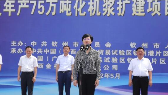 廣西壯族自治區(qū)人大副主任楊靜華 欽州市委書記、廣西自貿(mào)試驗(yàn)區(qū)欽州港片區(qū)黨工委書記林冠表示:金桂漿紙二期第二臺(tái)紙機(jī)和年產(chǎn)75萬噸化機(jī)漿擴(kuò)建項(xiàng)目同時(shí)開工,是以實(shí)際行動(dòng)貫徹落實(shí)全國穩(wěn)住經(jīng)濟(jì)基本盤和自治區(qū)黨委召開的穩(wěn)住全區(qū)經(jīng)濟(jì)基本盤會(huì)議精神的具體行動(dòng);并肯定了金桂漿紙頂住疫情帶來的巨大壓力,如期推進(jìn)二期工程建設(shè),扎實(shí)開展三期前期工作,并由此對(duì)促進(jìn)整個(gè)經(jīng)濟(jì)發(fā)展作出的貢獻(xiàn)。