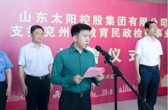 王營指出,山東太陽控股集團有限公司作為兗州區的龍頭企業、功勛企業,始終勇立改革開放的潮頭,開拓創新、銳意進取,為兗州經濟社會發展作出了卓越貢獻。特別是企業在做大做強主業的同時,積極履行社會責任,主動投身公益慈善事業,近年來在教育、養老、扶貧、疫情防控等多個領域已累計捐款超過2億元,今天再次慷慨解囊,捐款550萬元,用于救助家庭困難師生、開展困難老年人家庭適老化改造、司法救助等公益活動,充分彰顯了企業勇于擔當的時代精神和奉獻社會的大愛情懷。