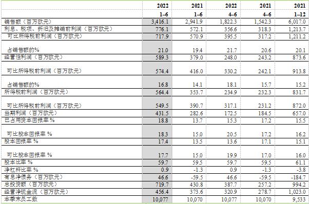 2022 年 1 -6 月(2021年1-6月同比數(shù)據(jù)) ·銷售額為 34.16億歐元(同比:29.42 億歐元) 經(jīng)營(yíng)性利潤(rùn)為 5.89億歐元(同比:3.79 億歐元);可比經(jīng)營(yíng)性利潤(rùn)為 5.74 億歐元(同比:4.16 億歐元) 稅前利潤(rùn)為 5.64 億歐元(同比:3.54 億歐元);可比稅前利潤(rùn)為 5.50 億歐元(同比:3.91 億歐元) 可比已占用資本回報(bào)率為 18.3% (同比:15%) 經(jīng)營(yíng)性凈現(xiàn)金流為 4.56 億歐元(同比:3.74 億歐元) 2022 年 4 - 6月(2021年4-6月同比數(shù)據(jù)) ·銷售額為 18.22 億歐元(同比:15.42 億歐元) ·經(jīng)營(yíng)性利潤(rùn)為2.48 億歐元(同比:2.43 億歐元);可比經(jīng)營(yíng)性利潤(rùn)為 3.30億歐元(同比:2.42 億歐元) ·稅前利潤(rùn)為 2.35億歐元(同比:2.32億歐元);可比稅前利潤(rùn)為 3.17億歐元(同比:2.31 億歐元) ·可比已占用資本回報(bào)率為 20.5%(同比:17.2%) ·經(jīng)營(yíng)性凈現(xiàn)金流為 3.21 億歐元(同比:2.79 億歐元) 2022 年第二季度主要事件 ·與上季度相比,中國(guó)和歐洲市場(chǎng)的針葉商品漿平均銷售價(jià)格均有所上漲。 ·對(duì)芬林紙板的紙板產(chǎn)品需求依然保持強(qiáng)勁。以歐元計(jì)價(jià)的紙板平均價(jià)格季度環(huán)比有所上漲。 ·位于芬蘭艾內(nèi)科斯基的 3D 纖維包裝示范工廠由芬林集團(tuán)和維美德公司共同所有,該工廠現(xiàn)已開始投入運(yùn)營(yíng)。 ·Juha Jumppanen 擔(dān)任芬林林業(yè)執(zhí)行副總裁,負(fù)責(zé)芬林集團(tuán)的木材供應(yīng)和森林服務(wù)業(yè)務(wù),Jaakko Anttila任職芬林梅沙木業(yè)執(zhí)行副總裁 ,負(fù)責(zé)芬林集團(tuán)的木材產(chǎn)品工業(yè)業(yè)務(wù),二人將于2022年8月1日正式加入芬林集團(tuán)高管團(tuán)隊(duì)。 俄羅斯對(duì)烏克蘭的軍事行動(dòng)對(duì)芬林集團(tuán)業(yè)務(wù)運(yùn)營(yíng)的影響 俄羅斯對(duì)烏克蘭的軍事行動(dòng)已使芬林集團(tuán)的業(yè)務(wù)運(yùn)營(yíng)受到影響。芬林集團(tuán)在俄羅斯唯一的生產(chǎn)工廠—— 斯維爾(Svir)鋸材廠目前已中斷運(yùn)營(yíng),從該國(guó)采購(gòu)木材的業(yè)務(wù)也已中斷。面向俄羅斯和白俄羅斯的產(chǎn)品交付工作也被迫暫停。2022年第二季度,芬林集團(tuán)確認(rèn)了與俄羅斯經(jīng)營(yíng)活動(dòng)中斷相關(guān)的資產(chǎn)減值8750萬(wàn)歐元。 替代俄羅斯木材的工作已按計(jì)劃進(jìn)行。俄羅斯的軍事行動(dòng)和隨之而來(lái)的制裁對(duì)能源問(wèn)題影響深遠(yuǎn)。目前面臨的最嚴(yán)峻挑戰(zhàn)來(lái)自生產(chǎn)所需天然氣的供應(yīng)和相關(guān)成本控制,尤其是針對(duì)中歐的生活用紙廠。一系列旨在取代天然氣的措施也正在有條不紊地進(jìn)行當(dāng)中。 新冠病毒疫情 芬林集團(tuán)嚴(yán)格遵守有關(guān)部門發(fā)布的新冠病毒防疫指南。今年5月,由于新冠疫情有所減輕,芬林集團(tuán)解除了相關(guān)的限制措施。芬林集團(tuán)的遠(yuǎn)程辦公建議(在職責(zé)允許的范圍內(nèi))將持續(xù)至8月初。之后,芬林集團(tuán)將采用遠(yuǎn)程辦公和現(xiàn)場(chǎng)工作相結(jié)合的模式。在疫情期間,芬林集團(tuán)的資源保障保持正常狀態(tài)。除少數(shù)例外情況,生產(chǎn)和交貨一直運(yùn)轉(zhuǎn)正常。 2022 年 7 月至 9 月的業(yè)績(jī)預(yù)測(cè) 芬林集團(tuán) 2022 年 7-9 月的可比經(jīng)營(yíng)性利潤(rùn)預(yù)計(jì)與 2022 年 4-6 月大致持平。 芬林集團(tuán)總裁兼首席執(zhí)行官何亦凱(Ilkka Hämälä)表示: “今年上半年的經(jīng)營(yíng)環(huán)境存在若干異常嚴(yán)重的威脅和風(fēng)險(xiǎn)。事實(shí)證明,新冠疫情將會(huì)是一場(chǎng)全球性的持久拉鋸戰(zhàn),我們現(xiàn)在不但必須適應(yīng)它,還要學(xué)會(huì)與之共存。中國(guó)是芬林集團(tuán)的主要市場(chǎng)之一。今年上半年,中國(guó)出現(xiàn)了旨在遏制新冠疫情的大規(guī)模封控現(xiàn)象,這對(duì)我們的經(jīng)營(yíng)活動(dòng)產(chǎn)生了直接和間接的影響。面對(duì)俄羅斯對(duì)烏克蘭采取的軍事行動(dòng),芬林集團(tuán)采取了大量應(yīng)對(duì)措施。除此之外,我們還中斷了在俄羅斯的業(yè)務(wù),停止從俄羅斯采購(gòu)木材,并重新安排了木材的使用和采購(gòu)工作。我們?cè)谥袣W的生活用紙業(yè)務(wù)也受到了能源價(jià)格飆升的影響,亟需采取調(diào)整措施。盡管處在動(dòng)蕩之中,市場(chǎng)對(duì)我們主要產(chǎn)品組合的需求卻依然強(qiáng)勁。因此我們?cè)O(shè)法調(diào)整定價(jià),以求完全或部分抵消成本上漲的影響。總體而言,我們今年上半年的業(yè)績(jī)相當(dāng)喜人。從營(yíng)業(yè)利潤(rùn)來(lái)看,我們今年第二季度創(chuàng)下了芬林集團(tuán)歷史上最佳同期業(yè)績(jī)紀(jì)錄。 目前,芬林集團(tuán)正在開展的投資項(xiàng)目受到了新冠疫情和俄羅斯軍事行動(dòng)的雙重影響:一是成本上升,二是材料和部件的供應(yīng)問(wèn)題。芬林芬寶位于芬蘭勞馬的新一代鋸材廠已于今年5月按計(jì)劃試運(yùn)行,并將于第三季度正式投產(chǎn)。芬林紙板胡蘇姆木漿廠的回收鍋爐和渦輪機(jī)的開機(jī)時(shí)間已從原計(jì)劃的第二季度推遲到了第四季度。這主要應(yīng)歸咎于資源短缺而導(dǎo)致的安裝作業(yè)推遲。疫情